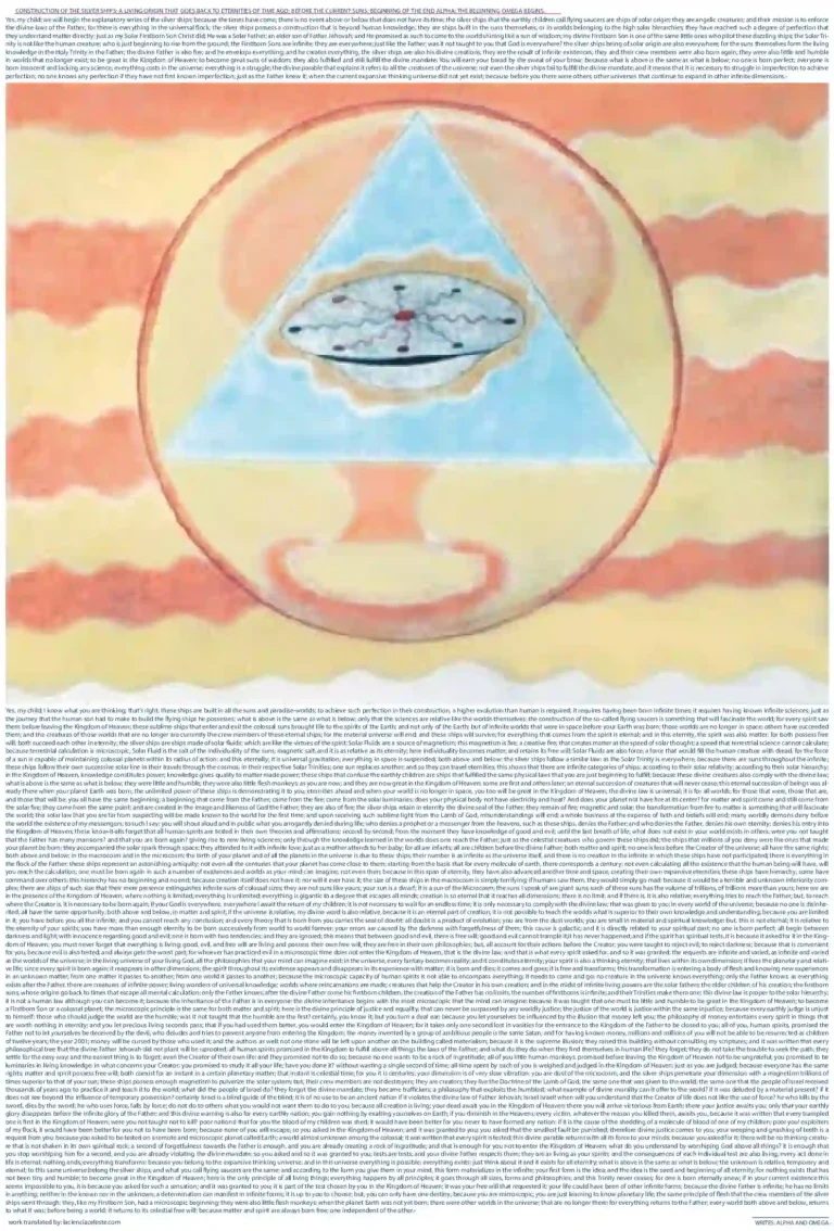 TITLE: CONSTRUCTION OF THE SILVER SHIPS; A LIVING ORIGIN THAT GOES BACK TO ETERNITIES OF TIME AGO; BEFORE THE CURRENT SUNS; BEGINNING OF THE END ALPHA; THE BEGINNING OMEGA BEGINS.-