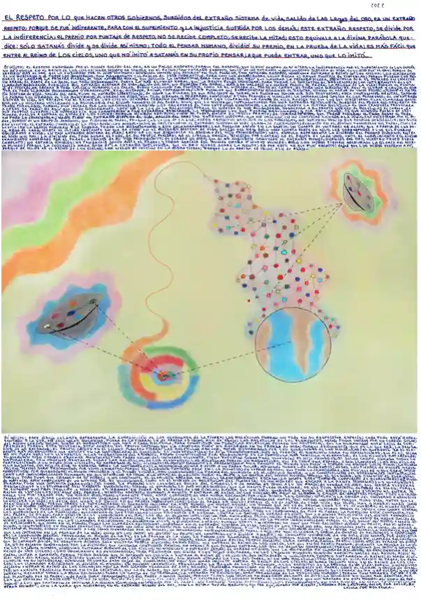 Yes, my child; this celestial drawing represents the composition of the elements of the Earth; the molecules form a whole in their respective species; each whole is represented at the same time, in colossal galaxies, outside the Earth; what is above is the same as what is below; the molecules of the elements are all united by a solar cord; from the same solar cord, magnetism arises that unites each molecule, to constitute a whole; the molecules have a history that humanity is far from understanding; because this history is within the very origin, which the creature asked not to remember in its life test; because it did not know what it was, the sensation of not remembering, the very origin on the distant planet Earth; the molecules in turn, are governed by the cherubim of the molecules; the cherub is the most microscopic element that exists in nature; the cherub is indestructible; it allows itself to be transformed, but does not perish; the cherub works in dimensions that the human eye cannot see; the elements and the sensations of the spirit are constituted by cherubim; it is the simplest and most elementary particle of the material worlds; the cherub only obeys mental orders; every solar father of the living universe has power over every cherub; the Firstborn Solar Son Christ, worked on nature, with mental orders over the molecules, of the elements; the molecules possess a magnetism, which is like a wait, to be called; the molecules belonging to the same living god, express themselves to the living son; the divine mandate will soon be witnessed by the world that asked for and awaits a divine final judgment; the glory and majesty of the son of god is expressed over nature; humanity has never seen a Solar Father, acting on the elements; since the times of Moses and Christ; such an event will be witnessed by the living and the dead; because the cherub is also in the dead; truly I tell you, that everything imaginable, that was, that is and that will be, is constituted by cherubim; the invisible world and the visible world are cherubim; the form of the cherub is the Omega circle; and the constitution of the cherub is infinite; just like human individualities; in which none is equal to the other; the cherub will be the alpha and the omega of the New World; because the one that was, did not know the cherub; because everything had to create itself; and yet, the cherub was in them; silently it was; the inert is also composed of cherubim; the material world is composed of a number of cherubim, as is the number of molecules of the planet; it is a number that escapes the human mind; the cherubim form an infinite hierarchy; just as the colossal suns of the cosmos form; what is above is the same as what is below; truly I tell you, that even your sensations and customs, are also cherubim; being the cherub the most microscopic, that the mind can imagine, it is that every spirit depends on them; because it was taught, that every small and humble, is great in power in the Kingdom of Heaven; it is enough for a single cherub to complain about the spirit, and that spirit does not enter the Kingdom of Heaven; here is why, no human spirit has returned to enter the Kingdom of Heaven; here is the weeping and gnashing of teeth; because everything imaginable that was created by the same god, absolutely everything, is composed of the same essence; by the same common law; the Alpha and the Omega of the expansive thinking universe, is the same communism made infinite variety; the unifying law of creation, dates from eternities before, the current universe; because there was life, before life was known; that is to say that no one is unique, in their own individuality; only the Father is unique; because he is from before, all life; that was, is and will be, no one will ever be unique ever; because others preceded him; the cherub will initiate in this world, a new world; a world that is not a test like yours;